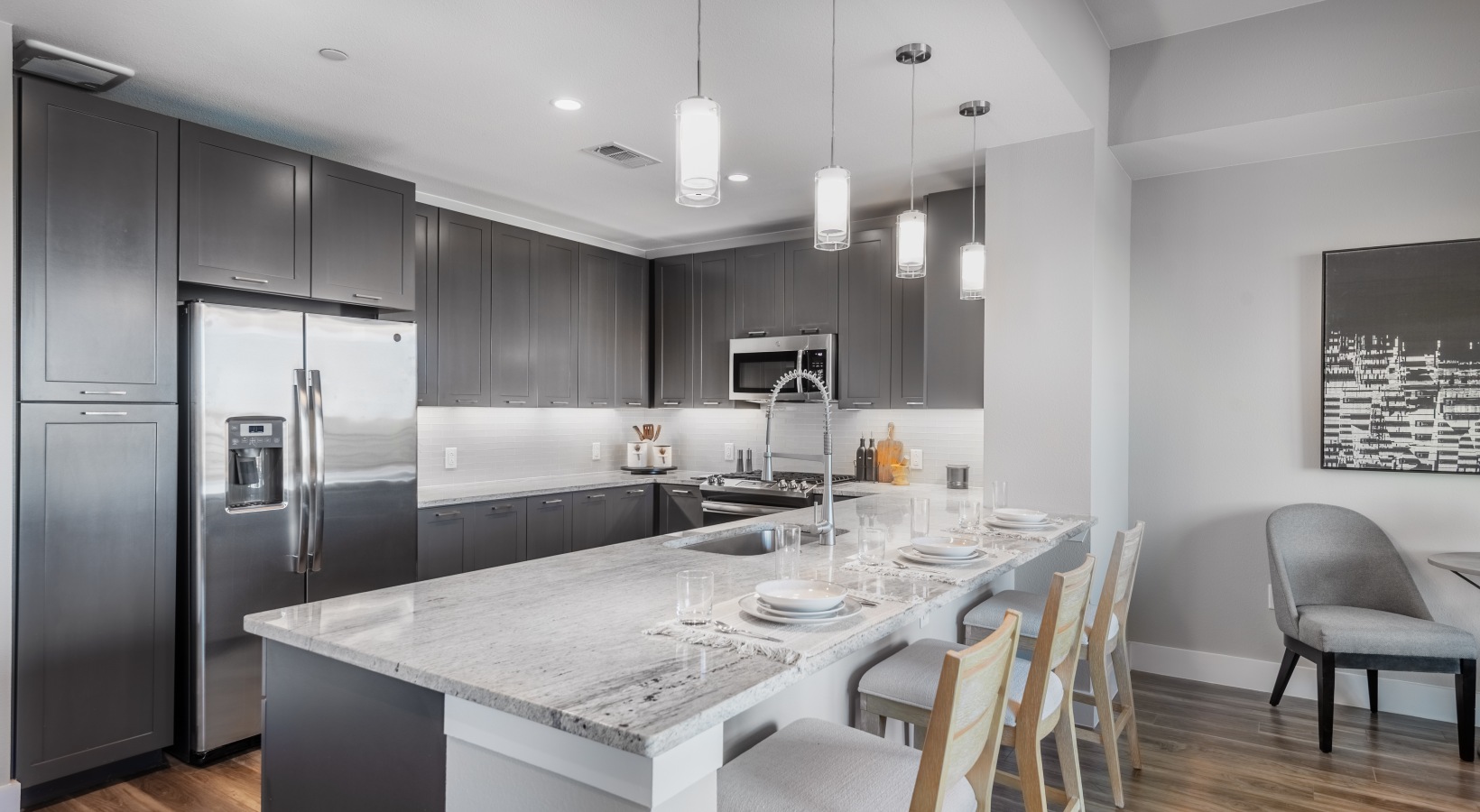 • Large chef-inspired kitchens and solid hardwood flooring